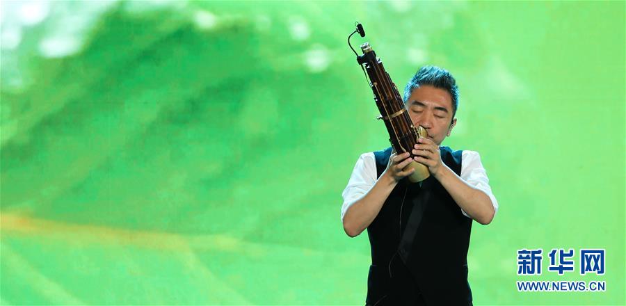 7月3日,著名音乐人吴彤在2019夏季达沃斯闭幕式上表演。 当日,第十三届夏季达沃斯论坛顺利结束全部议程,在大连落下帷幕。 新华社记者 姚剑锋 摄