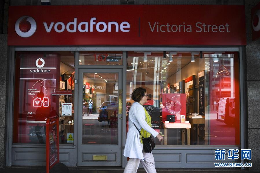 7月3日,在英国伦敦,一名女子走过一家沃达丰商店。新华社发(阿尔贝托·佩扎利摄)