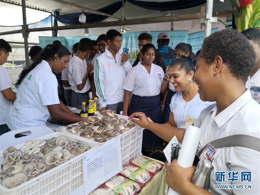 7月4日,在斐济首都苏瓦,人们参观中国援助斐济菌草技术合作项目展位。 为期3天的2019年斐济全国农业展自3日起在首都苏瓦举行。这次展览旨在宣传斐济的农业服务,展示新产品与新技术,促进农产品生产与私营部门之间的伙伴关系。 新华社记者 张永兴 摄