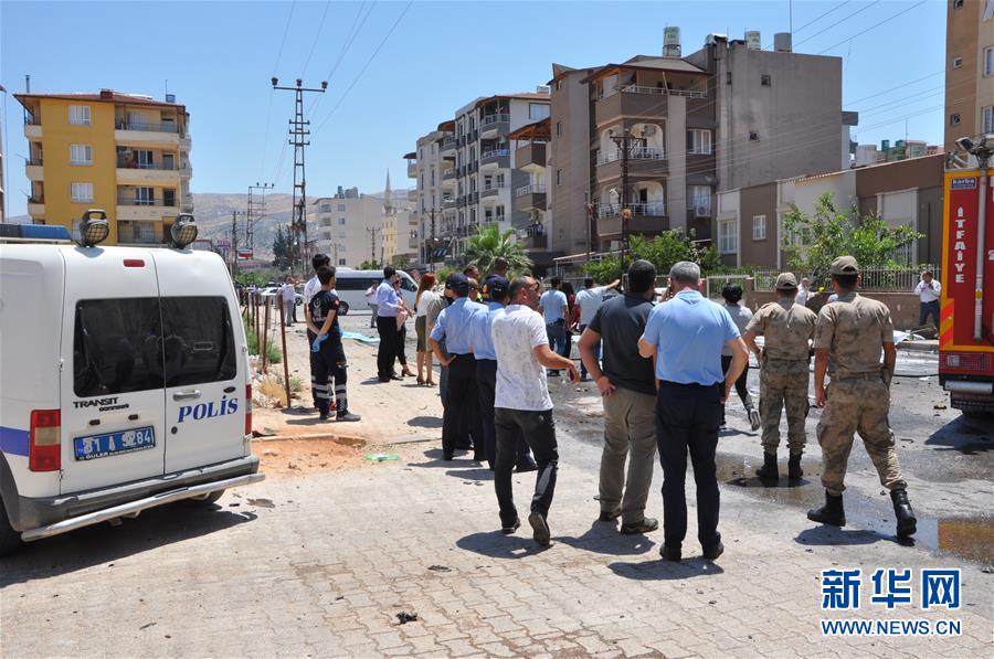 7月5日,在土耳其哈塔伊省雷伊汉勒,警方在汽车爆炸事件现场工作。 新华社发