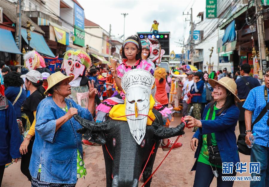 7月6日,泰国黎府民众参加“鬼面节”游行。每年六七月份,泰国东北地区黎府的丹赛地区都会举行“鬼面节”庆祝活动,人们身着多彩的服装和鬼面,在街上载歌载舞,游行狂欢。新华社记者 张可任 摄