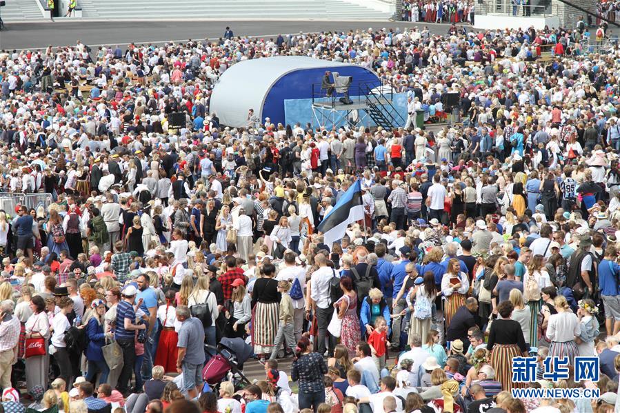 7月7日,在爱沙尼亚首都塔林,第27届歌唱庆典“我的祖国,我的爱”主题音乐会在歌唱庆典广场举行。 主题为“我的祖国,我的爱”的大型歌舞庆典活动7日在爱沙尼亚首都塔林落下帷幕。来自爱沙尼亚和其他国家的1700多个合唱团及舞蹈团参加了此次活动,表演者总数达4.7万名。 新华社记者 郭春菊 摄