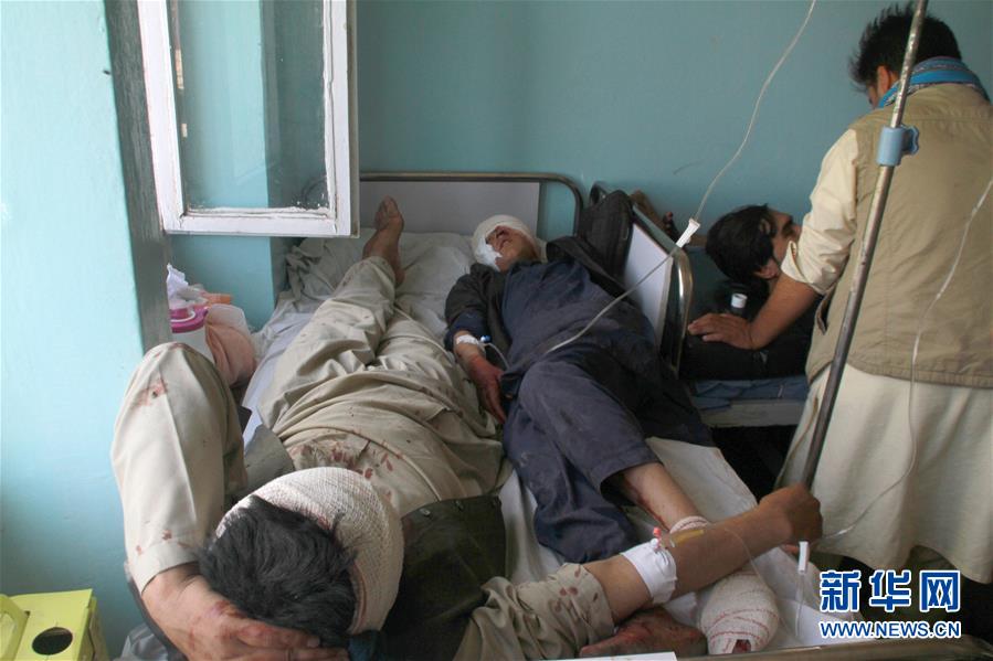 7月7日,在阿富汗加兹尼市,伤者在一家医院内接受治疗。 阿富汗政府官员7日说,阿东部加兹尼省首府加兹尼市当天发生一起汽车炸弹袭击事件,造成至少6人死亡、96人受伤。 新华社发(鲁胡拉 摄)