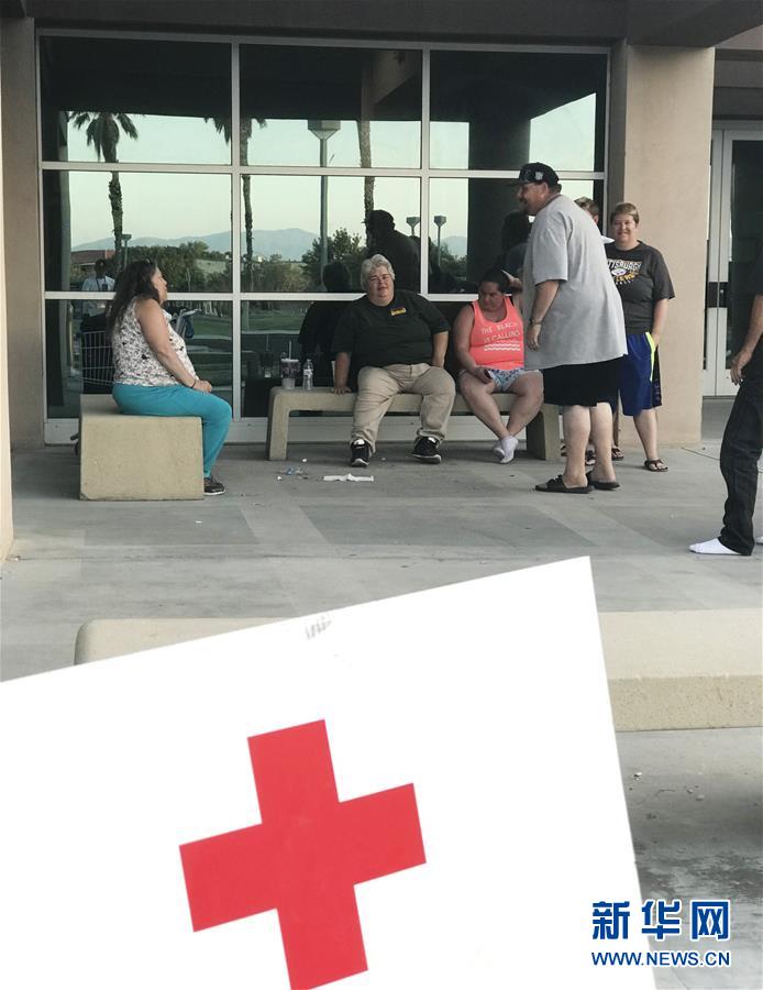7月6日,民众在美国加利福尼亚州里奇克雷斯特一处医疗救助中心休息(手机照片)。 美国加利福尼亚州南部地区4日和5日先后发生6.4级和7.1级地震,震中和附近地区遭不同程度破坏。两次强震震中所在地区圣贝纳迪诺县已经进入紧急状态。 新华社发(曾慧摄)