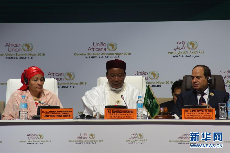 7月7日,在尼日尔首都尼亚美,尼日尔总统伊素福(中)在开幕式上致辞。 非洲联盟非洲大陆自由贸易区特别峰会7日在尼日尔首都尼亚美开幕,会议将正式宣布非洲大陆自贸区成立。非洲大陆自贸区协议已于5月30日正式生效。截至目前,非盟55个成员中,除厄立特里亚外,54个成员已签署协议,其中27个成员按本国相关法律程序批准协议后向非盟委员会递交了协议批准书。 新华社发