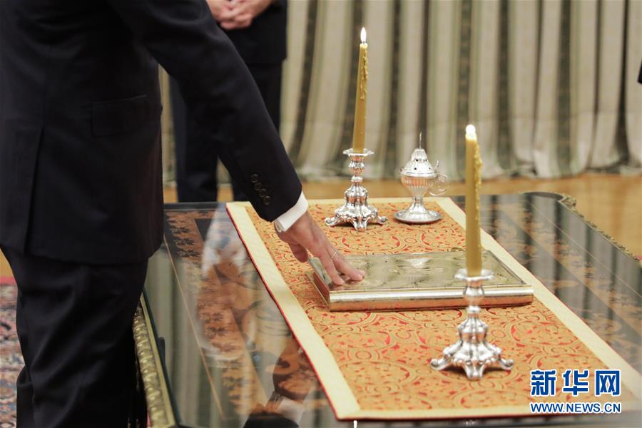 7月8日,在希腊雅典,希腊新总理基里亚科斯·米佐塔基斯参加宣誓仪式。 希腊新总理基里亚科斯·米佐塔基斯8日在雅典宣誓就职,希腊总统帕夫洛普洛斯授权其组建新一届政府。在7日的希腊议会选举中,米佐塔基斯领导的新民主党赢得300个议会席位中的158席。 新华社发(莱夫泰里斯·帕特萨利斯 摄)