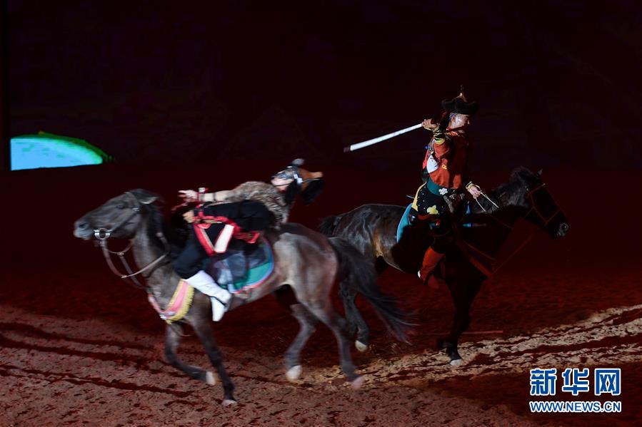 7月8日,在二连浩特市中蒙国际马术演艺基地,蒙古国演员在表演骑马打斗。 今年6月至10月,50多名蒙古国年轻演员将在内蒙古自治区二连浩特市的中蒙国际马术演艺基地,为观众演出近百场次的大型马术实景剧。这些演员来自蒙古国野马马术俱乐部,经过几个月的专业培训之后来到中国。在实景剧中,年轻演员们不仅呈现特色民族文化,还展示高超的马术技巧。 2016年,二连浩特当地投入资金,与蒙古国野马马术俱乐部合作,开始打造并试演马术实景剧。三年多来,这一文化演出活动不仅成为了二连浩特市文化旅游的重要组成部分,也促进了中蒙两国民间文化交流。 新华社记者 刘磊 摄