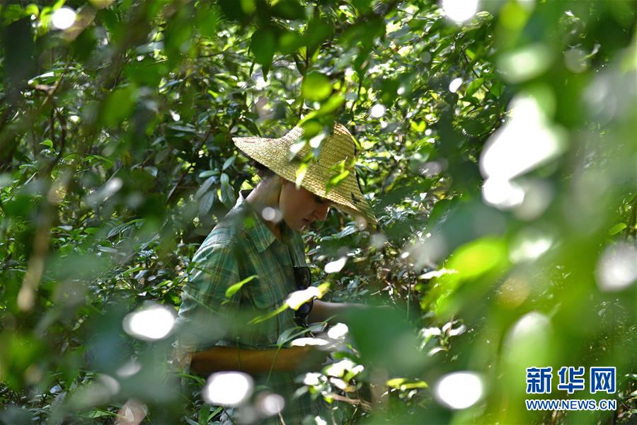 6月27日,刘莎莎在江西婺源县晓起村附近的树林里工作。 新华社记者 张瑞琪 摄