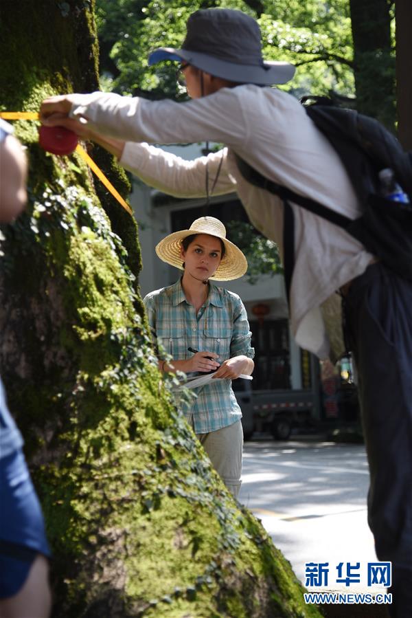 6月27日,在江西婺源县晓起村附近的树林,刘莎莎和助手一起工作。新华社记者 张瑞琪 摄