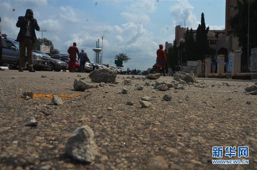 7月9日,在尼日利亚首都阿布贾,冲突现场散落着石块。 新华社发(奥巴萨摄)