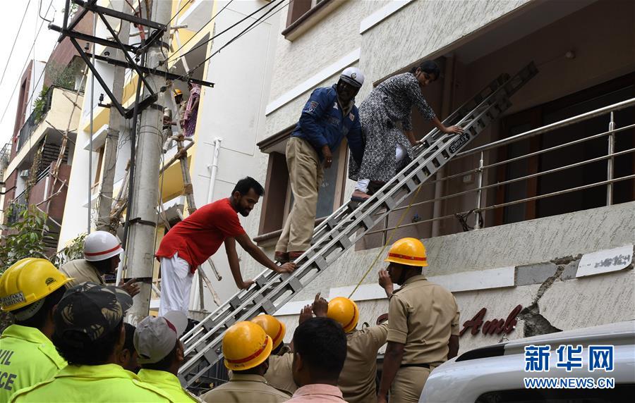 这是7月10日在印度班加罗尔拍摄的事故现场。 印度班加罗尔两栋建筑7月10日发生倒塌,造成至少5人死亡。 新华社发