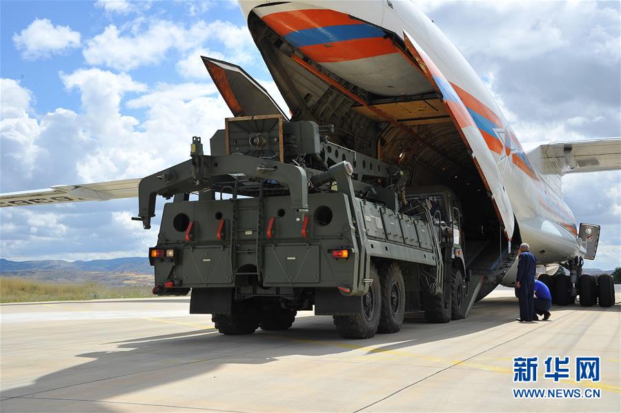7月12日,在土耳其安卡拉,一架大型俄罗斯运输机在穆尔特德空军基地卸货。 土耳其外长恰武什奥卢12日表示,土耳其从俄罗斯购买的S-400防空导弹系统已开始交付。土国防部同日发表声明说,该系统首批设备运抵土首都安卡拉。 新华社发(土耳其国防部供图)
