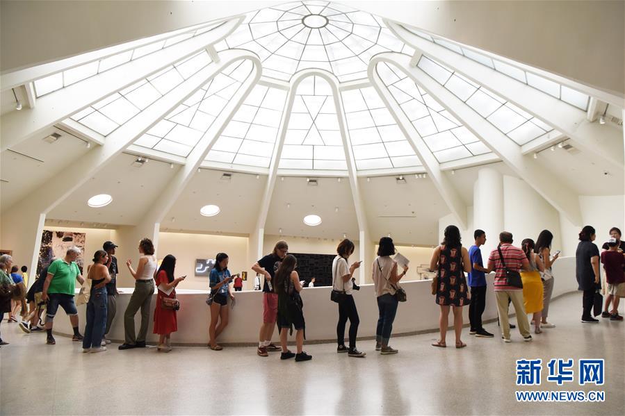 7月12日,在美国纽约,游客参观古根海姆博物馆。 古根海姆博物馆是纽约的地标建筑之一,以造型独特的螺旋结构著称,是美国著名建筑师弗兰克·劳埃德·赖特的代表作。近日,包括古根海姆博物馆在内的8座赖特设计的建筑被联合国教科文组织列入世界遗产名录。 新华社记者韩芳摄