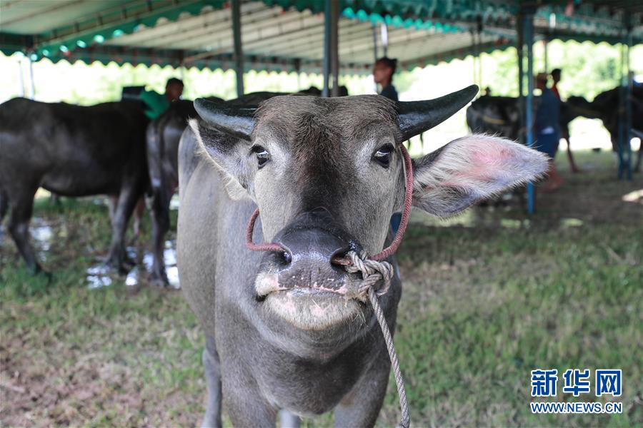 这是7月13日在泰国春武里府赛牛节上拍摄的等待参赛的水牛。新华社记者 张可任 摄