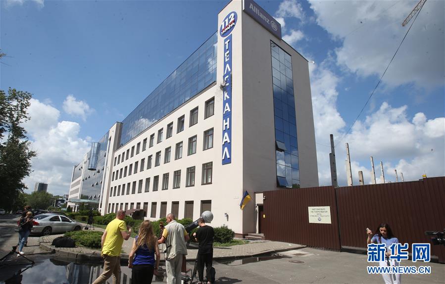 这是7月13日在乌克兰首都基辅拍摄的遇袭电视台大楼。新华社发(谢尔盖摄)