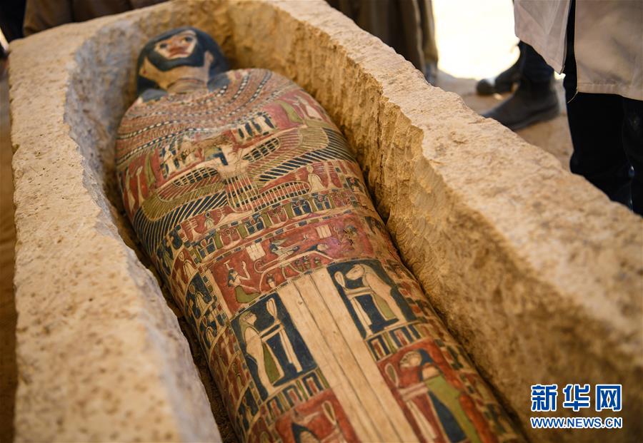 这是7月13日在埃及首都开罗以南的弯曲金字塔附近拍摄的棺椁。新华社记者 李琰 摄