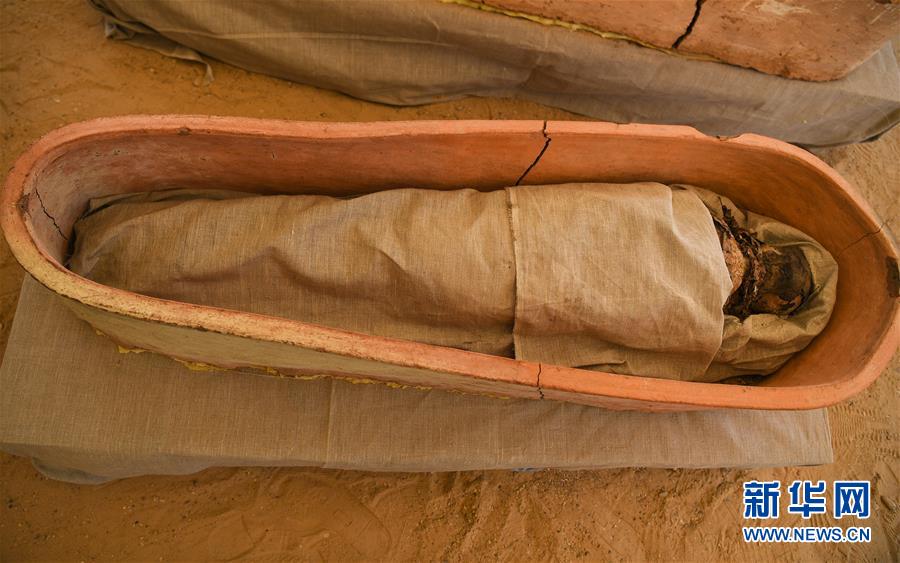 这是7月13日在埃及首都开罗以南的弯曲金字塔附近拍摄的棺椁。新华社记者 李琰 摄