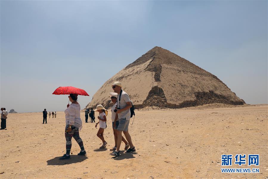 这是7月13日在埃及首都开罗以南的代赫舒尔古埃及皇家墓地拍摄的弯曲金字塔外观。新华社发(艾哈迈德·戈马摄)