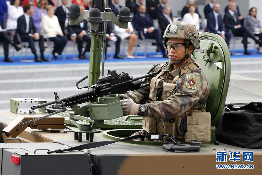 这是7月14日在法国巴黎拍摄的国庆阅兵仪式现场。 当日,法国在首都巴黎举行国庆阅兵仪式。 新华社发(杰克·陈摄)
