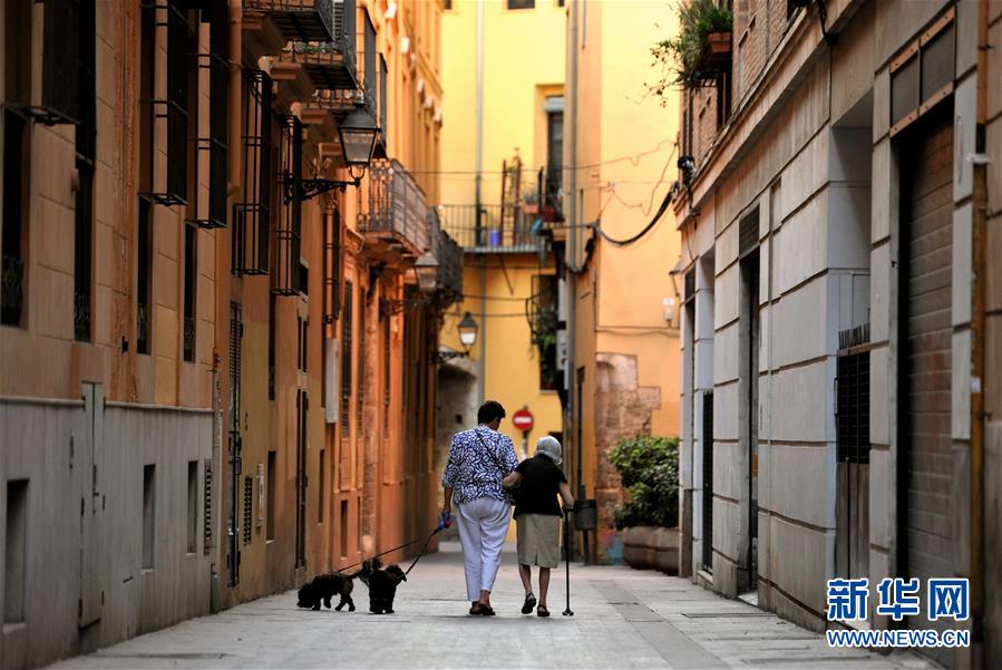 7月14日,在西班牙巴伦西亚,行人牵着狗走过小巷。 西班牙巴伦西亚紧靠大海,一年四季气候宜人。时值盛夏,游客纷纷来到这里度假,与当地居民一起享受悠闲夏日。 新华社记者 郭求达 摄