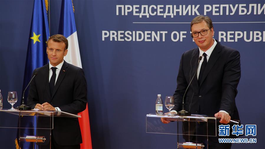 7月15日,在塞尔维亚首都贝尔格莱德,塞尔维亚总统武契奇(右)与来访的法国总统马克龙出席新闻发布会。 正在塞尔维亚访问的法国总统马克龙15日说,塞尔维亚为加入欧盟做出不少改变,但欧盟目前没有为吸纳新成员国做好准备。欧盟运转状况不佳,需要通过改革提高决策效率,与塞尔维亚入盟进程相匹配。 新华社发(内马尼亚·恰布里奇摄)