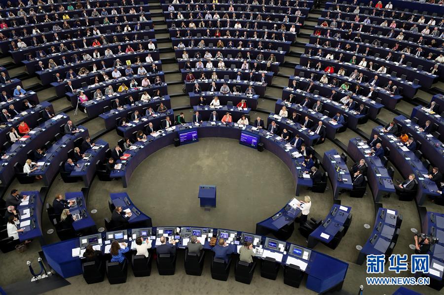 这是7月16日在法国斯特拉斯堡欧洲议会总部拍摄的会议现场。新华社记者张铖摄