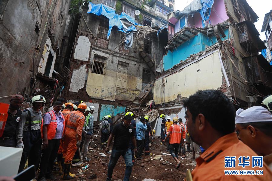 7月17日,在印度孟买,救援人员在坍塌事故现场搜救。 印度警方17日说,孟买南部16日发生的楼房坍塌事故遇难人数已升至14人,另有多人受伤送医。 新华社发