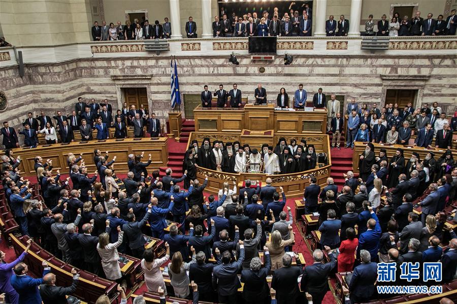 7月17日,在希腊雅典,新一届议会议员出席宣誓就职仪式。新华社发(帕纳约蒂斯摄)