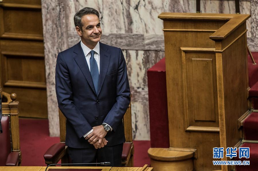 7月17日,在希腊雅典,总理米佐塔基斯出席议会议员宣誓就职仪式。新华社发(帕纳约蒂斯摄)
