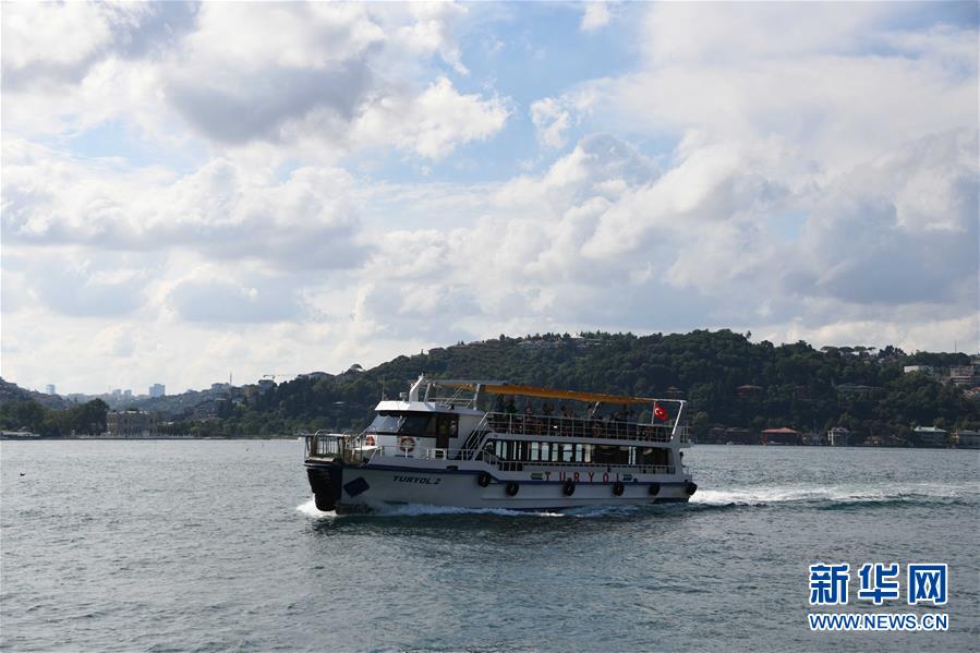 7月18日,在土耳其伊斯坦布尔,一艘游船在博斯普鲁斯海峡航行。新华社记者 徐速绘 摄