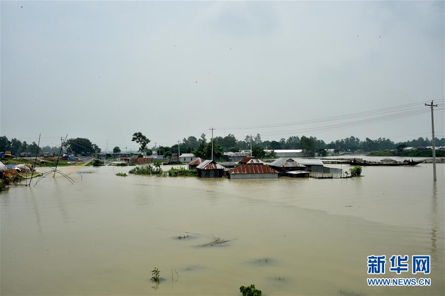 7月18日,在孟加拉国坦盖尔,房屋浸泡在洪水中。 近日的强降雨导致孟加拉国部分地区遭洪水侵袭。 新华社发