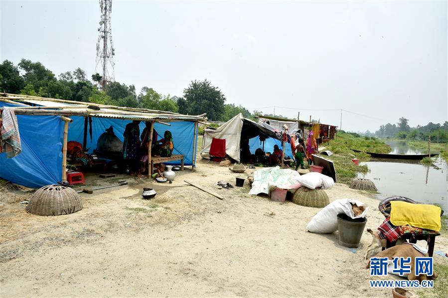7月18日,在孟加拉国坦盖尔,人们在简易帐篷中生活。 近日的强降雨导致孟加拉国部分地区遭洪水侵袭。 新华社发