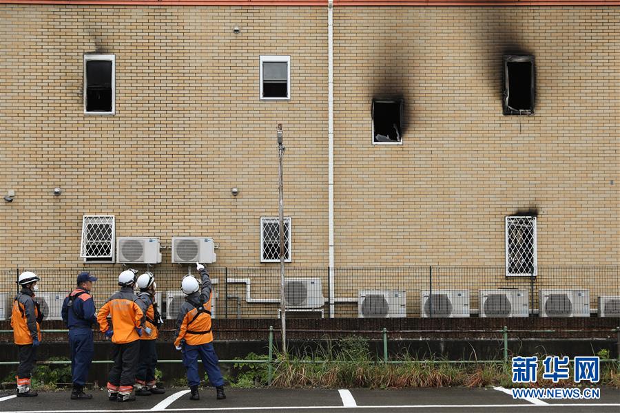 7月19日,在日本京都,消防员在纵火案现场工作。 新华社记者杜潇逸摄