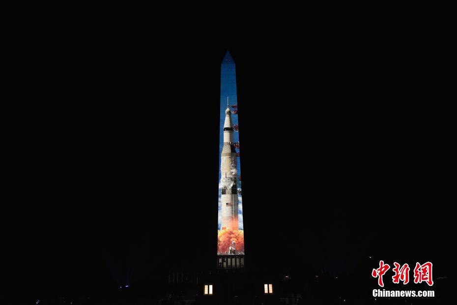 纪念人类登月50周年 华盛顿纪念碑上演灯光秀
