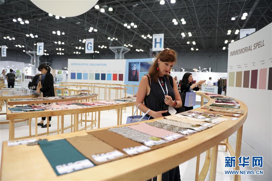 7月22日,客商在美国纽约举行的第二十届中国纺织品服装贸易展览会上参观。新华社记者 王迎 摄