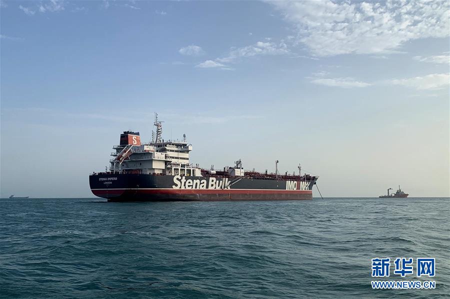 这是7月21日在伊朗霍尔木兹海峡附近拍摄的“史丹纳帝国”号油轮。新华社/伊朗学生通讯社