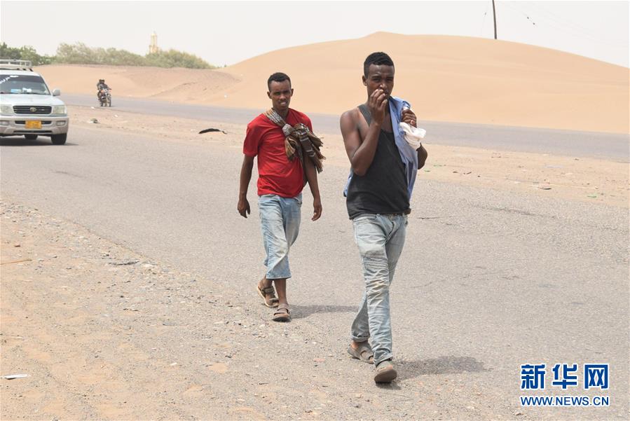 这是7月22日在也门南部拉赫季省一条公路上拍摄的来自非洲的非法移民。新华社发(穆拉德·阿卜杜摄)