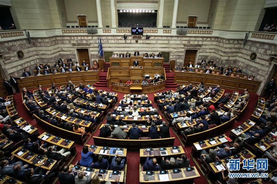7月22日,在希腊雅典,总理米佐塔基斯在议会信任投票开始前讲话。新华社发(莱夫泰里斯·帕特萨利斯摄)