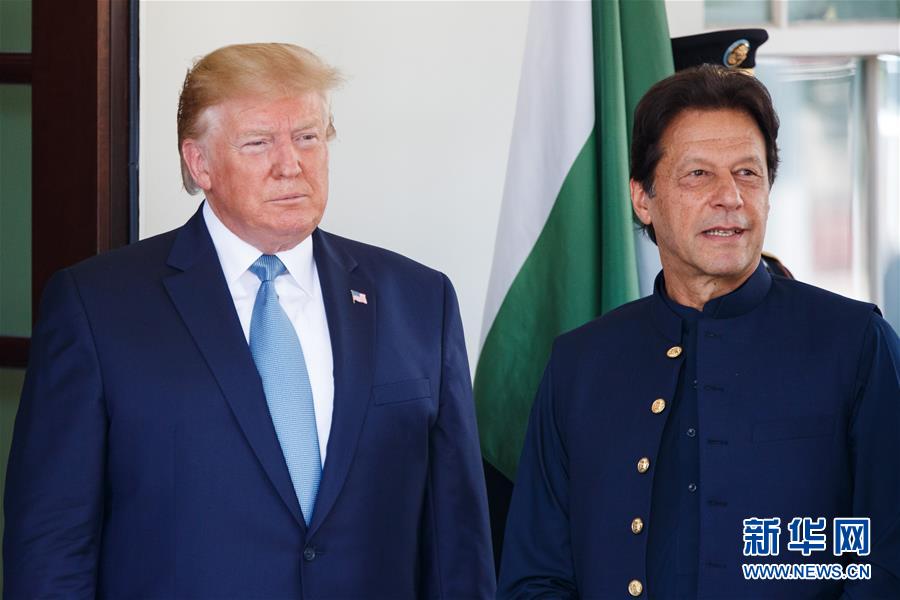 7月22日,在美国华盛顿白宫,美国总统特朗普(左)欢迎巴基斯坦总理伊姆兰·汗。