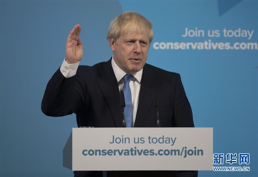 7月23日,在英国伦敦,新当选的英国保守党领袖鲍里斯·约翰逊发表演讲。 英国前外交大臣、伦敦前市长鲍里斯·约翰逊7月23日当选执政党保守党领袖,将接任英国首相。 新华社发