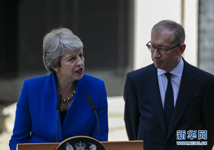 7月24日,在英国伦敦,特雷莎·梅(左)发表告别演说。她随后与丈夫离开唐宁街10号首相府,去向英国女王请辞。 新华社记者 韩岩 摄