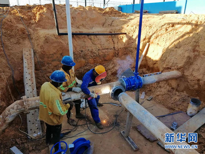 卡宾达供水项目安籍熟练焊接技术工人正在工作。斯琴 摄