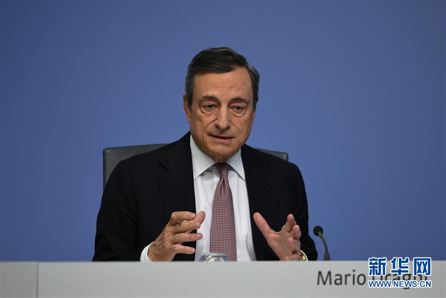 7月25日,在位于德国法兰克福的欧洲中央银行总部,欧洲央行行长德拉吉在新闻发布会上发言。 欧洲中央银行(欧洲央行)25日召开货币政策会议,在维持欧元区三大关键利率不变的同时,调整前瞻性指引,预期关键利率至少到2020年上半年将“保持或低于当前水平”。 新华社记者 逯阳 摄