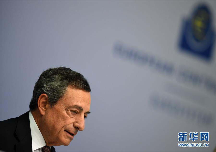 7月25日,在位于德国法兰克福的欧洲中央银行总部,欧洲央行行长德拉吉在新闻发布会上发言。 欧洲中央银行(欧洲央行)25日召开货币政策会议,在维持欧元区三大关键利率不变的同时,调整前瞻性指引,预期关键利率至少到2020年上半年将“保持或低于当前水平”。 新华社记者 逯阳 摄