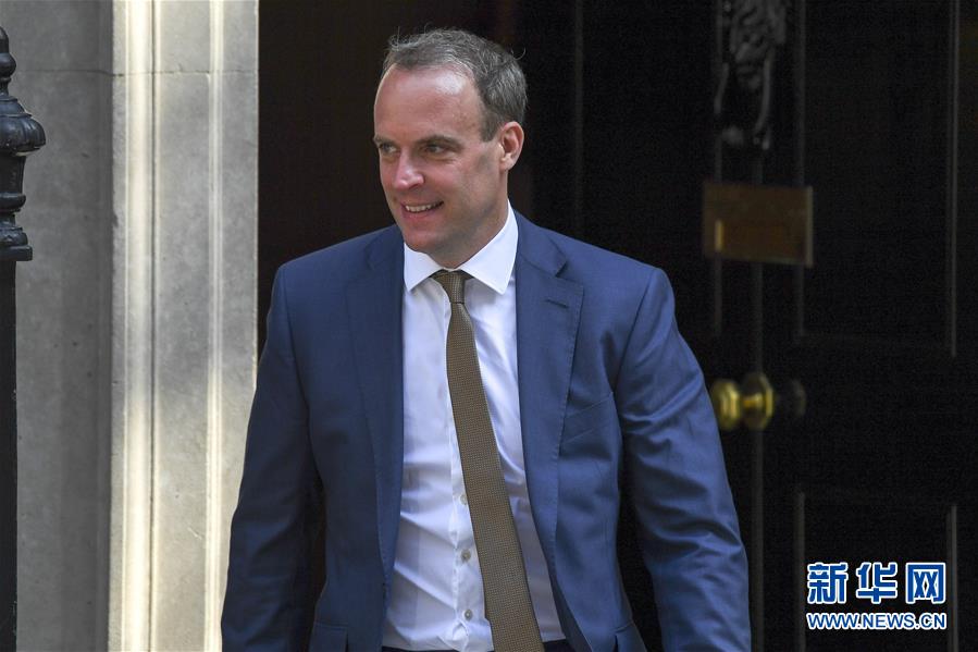 7月25日,在英国伦敦,英国外交大臣多米尼克·拉布参加完内阁会议后离开首相府。 当日,英国首相鲍里斯·约翰逊召开首次内阁会议。 新华社发(阿尔贝托·佩扎利摄)