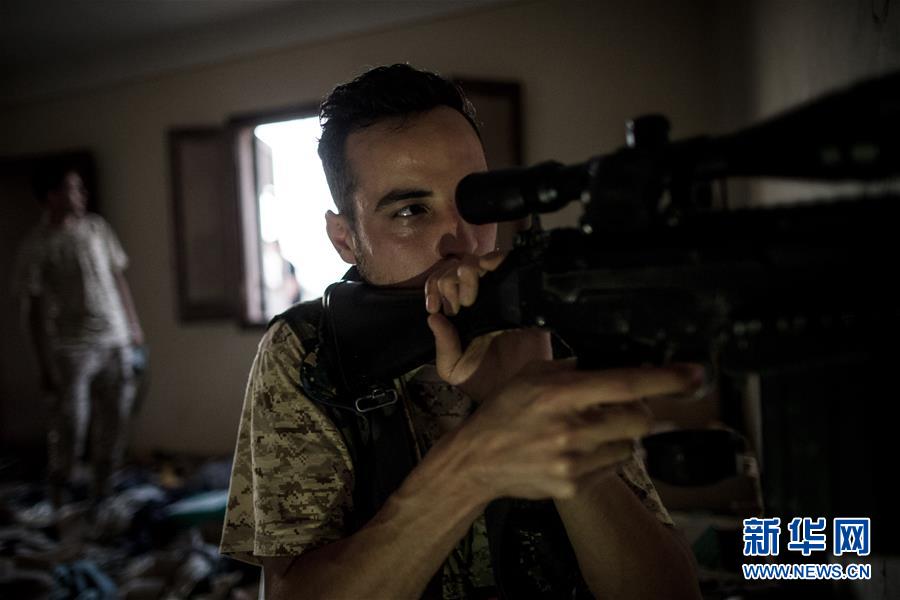 这是7月25日在利比亚的黎波里国际机场附近拍摄的支持利比亚民族团结政府的武装人员。 利比亚民族团结政府20日说,东部军事领导人哈利法·哈夫塔尔麾下“国民军”可能加强对首都的黎波里的攻势。利比亚“国民军”4月4日起对的黎波里发起军事行动,与控制该市的利比亚民族团结政府军队交战。 新华社发(阿姆鲁摄)