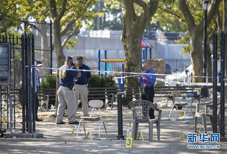 7月28日,在美国纽约,警方调查人员在枪击事件现场工作。 新华社记者 王迎 摄