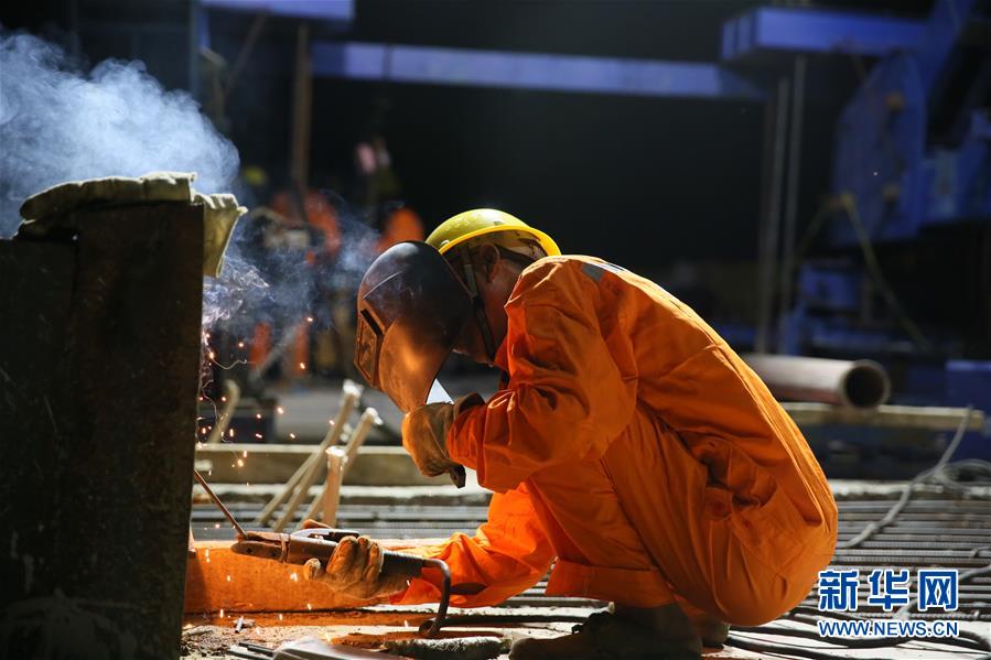 7月27日,中国中铁八局工人在中老铁路老挝琅勃拉邦湄公河特大桥上焊接,为28日的合龙做准备。 随着最后一个合龙节段混凝土的浇筑,中老铁路老挝琅勃拉邦湄公河特大桥28日成功合龙,实现全桥贯通,比计划工期提前7个月。 新华社发(熊天泽摄)
