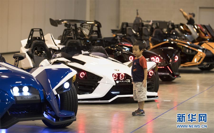 7月28日,在美国德克萨斯州休斯敦,一名儿童站在“北极星弹弓”定制车旁。 本次在休斯敦举行的改装车展旨在为用户提供一个展示和交易产品的平台,其中产品包括轮胎、车身、灯饰和影音器材等。本次车展还推出自主组装机器人车辆的比赛,对参赛选手不设年龄限制。 新华社发(李怡今摄)