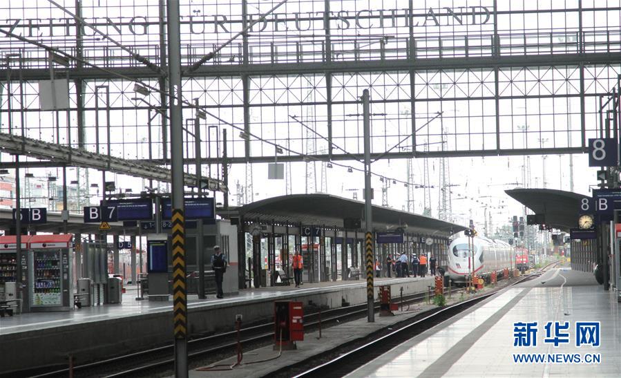 7月29日,德国警察在法兰克福中央火车站站台展开现场调查。